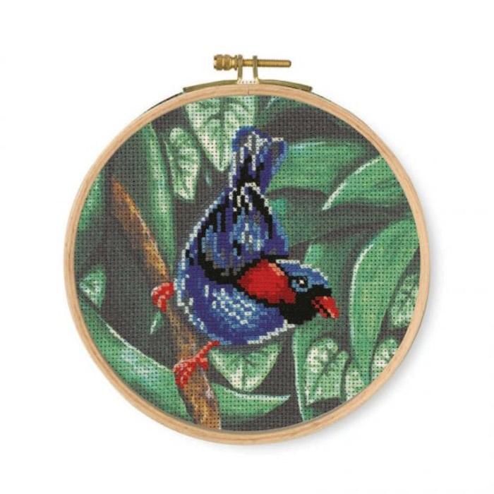 DMC 14 Count Printed Cross Stitch Kit, DMC Threads, Chart, 6 inch Wooden Embroidery Hoop and Instructions are included.