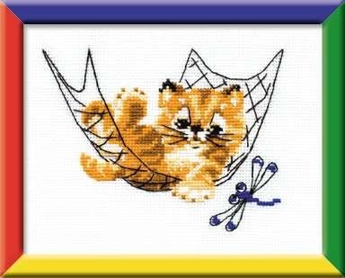 Description Chart, 14 count white Zweigart Aida fabric, coloured scheme, stranded cotton threads 6 colors and needle