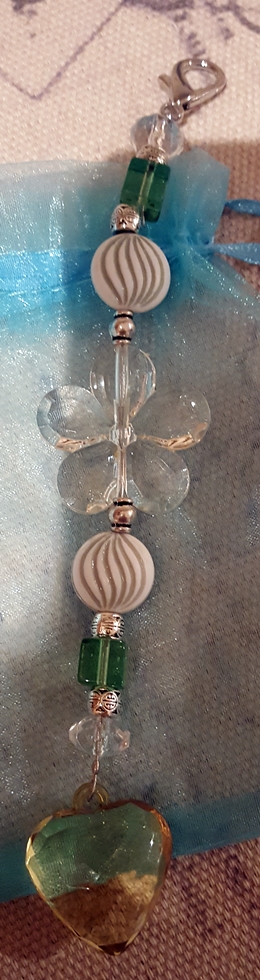 Green Heart Charm with Clear Flower Bead